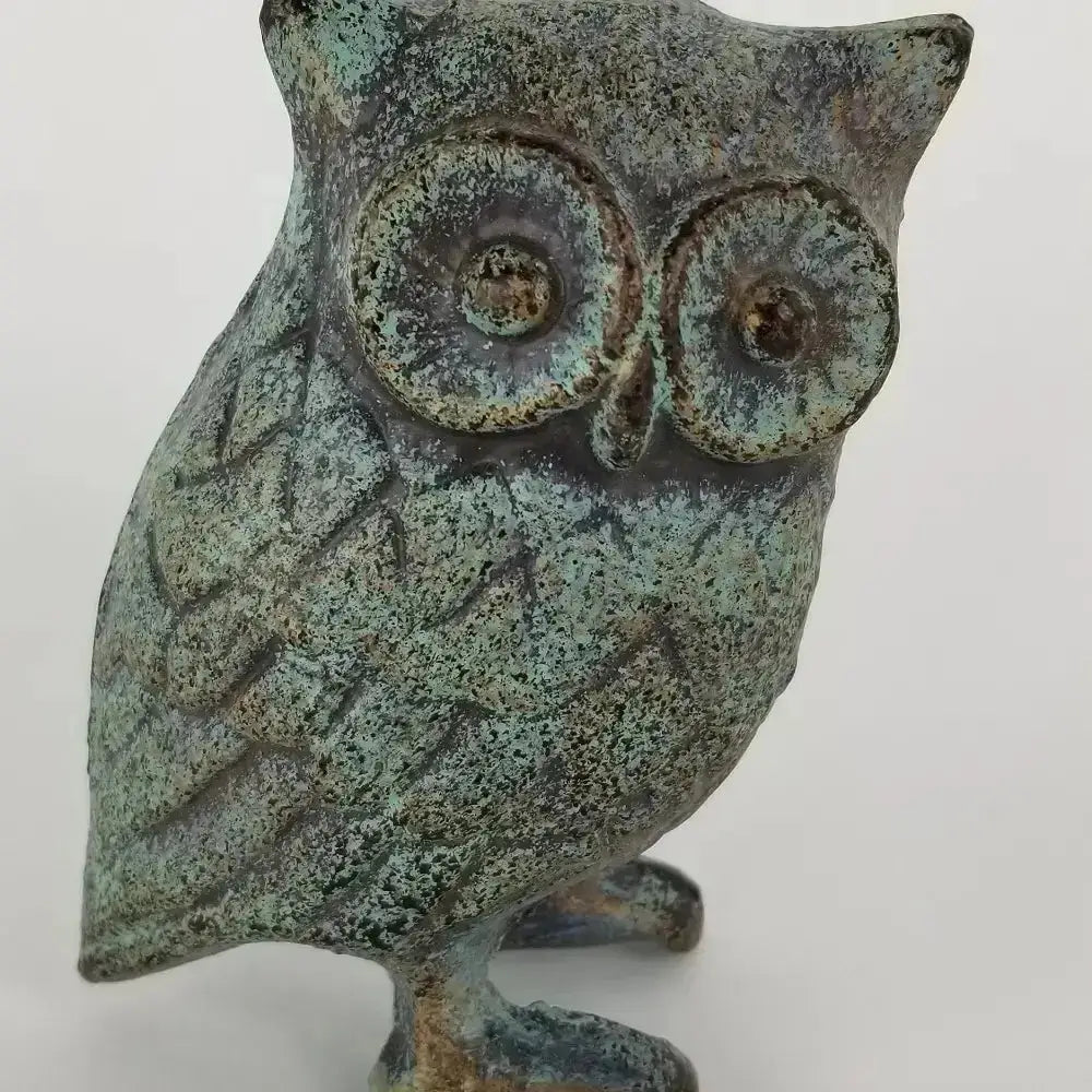 Cast Iron Owl in Rustic Green, Blue Finish.